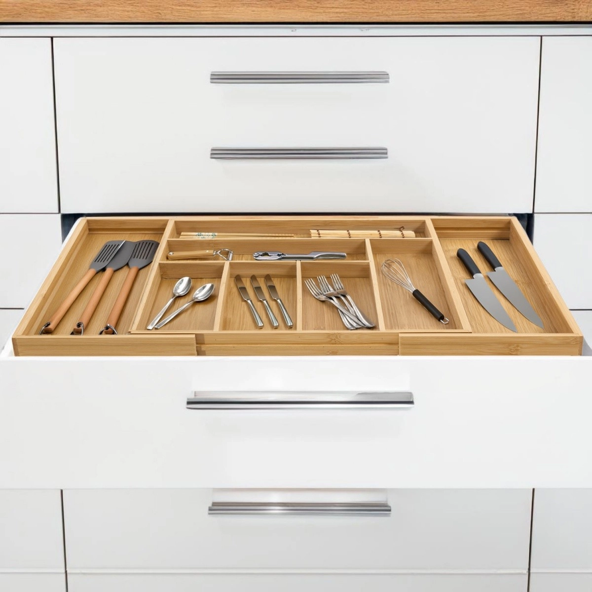 Válasszon állítható válaszfalas evőeszköztartókat és fiókbetéteket, vágódeszka- és tepsirendezőket, fedőtartókat, serpenyőtartó és fűszertartó állványokat, akasztós síneket kampókkal, sarokpolcokat és Lazy Susan forgótálcát. A címkézhető és egymásra rakható hűtő- és kamraszervezők rendet, frissességet és áttekinthetőséget biztosítanak a készletek felett. A moduláris megoldások jobban kihasználják minden centimétert, felgyorsítják az ételkészítést, és hatékony helymegtakarítást valamint tartós konyhaszervezést nyújtanak.