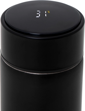 Stílusos termoszbögre érintésre működő LED hőmérséklet‑kijelzővel a kényelmes útközbeni ellenőrzéshez. A vákuumosan szigetelt dupla fal órákig tartja a hőt, az rozsdamentes acél élelmiszerbiztonságos, a finom szűrő pedig felfogja a tealeveleket vagy a kávéüledéket. 500 ml űrtartalom, szivárgásmentes tető és minimalista fekete dizájn a mindennapi használathoz autóba, irodába és utazáshoz.