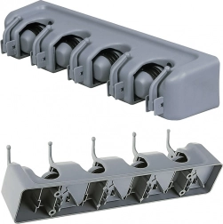 Praktikus fali rendszerező, amely rendben tartja az otthoni és kerti felszerelést. Kínál 4 tartót kefékhez, mopokhoz vagy rudakhoz és 5 akasztót apróságokhoz. Könnyen felfogatható a falra, és az okos szorítós elemeknek köszönhetően különböző átmérőjű rudakhoz illeszkedik. Ideális háztartási helyiségbe, garázsba, műhelybe, konyhába, sőt horgászbotokhoz is.