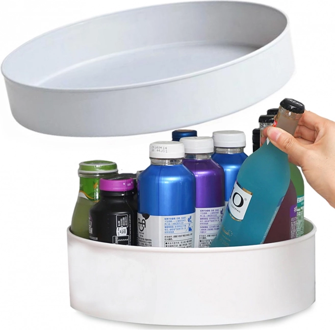 Az univerzális, forgatható rendező ideális segítség minden konyhába és fürdőszobába. A kompakt tál stabil, forgó talppal megkönnyíti a keresett tétel gyors megtalálását és kivételét turkálás nélkül. A strapabíró műanyagból készült, minimalista dizájn a legtöbb enteriőrhöz illik, és segít megőrizni a tisztaságot és az áttekinthetőséget a polcokon és a munkalapon is.