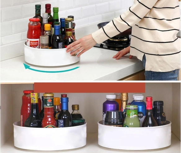 Praktikus, forgatható rendező konyhaszekrénybe vagy munkalapra, amely áttekinthetően egy helyen tartja fűszereit, gyógyszereit, kozmetikumait és egyéb apróságokat. A forgó talpnak köszönhetően gyors hozzáférést biztosít az elhelyezett dolgokhoz, és segít fenntartani a rendet a háztartásban.