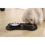 Biztosítson kedvencének kényelmes és tiszta etetést. A két rozsdamentes acél tál 2 × 450 ml űrtartalommal rugalmas szilikon alátétbe van illesztve, amely felfogja a kilöttyenő vizet és a kiszóródó eledelt. A csont alakú alátét megemelt peremmel és csúszásgátló felülettel rendelkezik, így a helyén marad a lelkes lakomázás közben is.