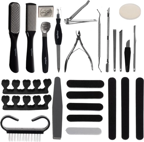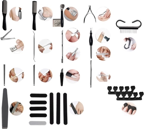 Reszelőktől és polírozóktól kezdve a bőrkeményedés-vágón át az ujjelválasztókig – mindent tartalmaz a körmök és a lábfejek formázásához, tisztításához és a befejező munkákhoz.