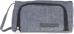Az univerzális, 3 az 1-ben tolltartó elegáns szürke színben iskolai tolltartóként, kozmetikai neszesszerként és utazási rendezőként is szolgál. Két rekeszt, praktikus zsebeket és rugalmas pántokat kínál a tökéletes áttekinthetőségért. A strapabíró anyagnak, a cipzárnak és a csuklópántnak köszönhetően ideális iskolába, utazáshoz és irodába egyaránt.