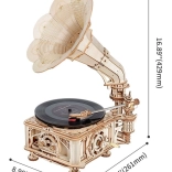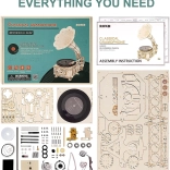 A csomag része egy három dallal ellátott vinillemez: The Merry Gent (0:47), Memory Of A Dance (2:07) és The Giant Killers (1:27). Képes lejátszani 7" és 10" vinillemezeket. Az elemek lézerrel vannak vágva furnérból, és az összeszerelés a mellékelt útmutató segítségével történik.