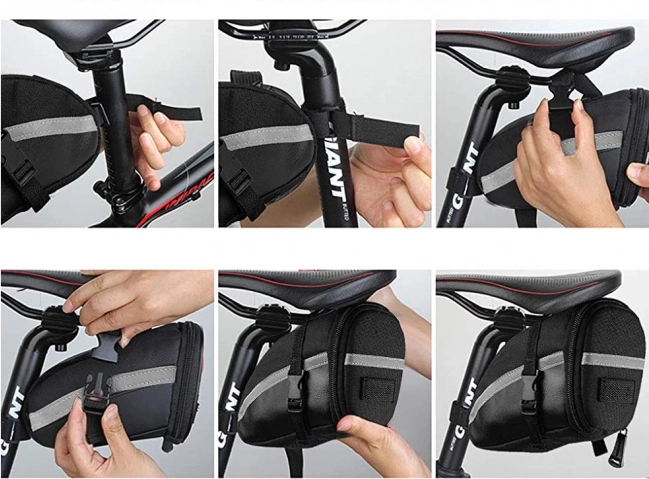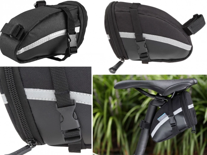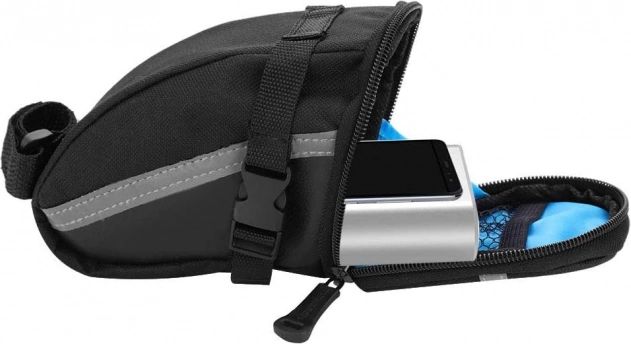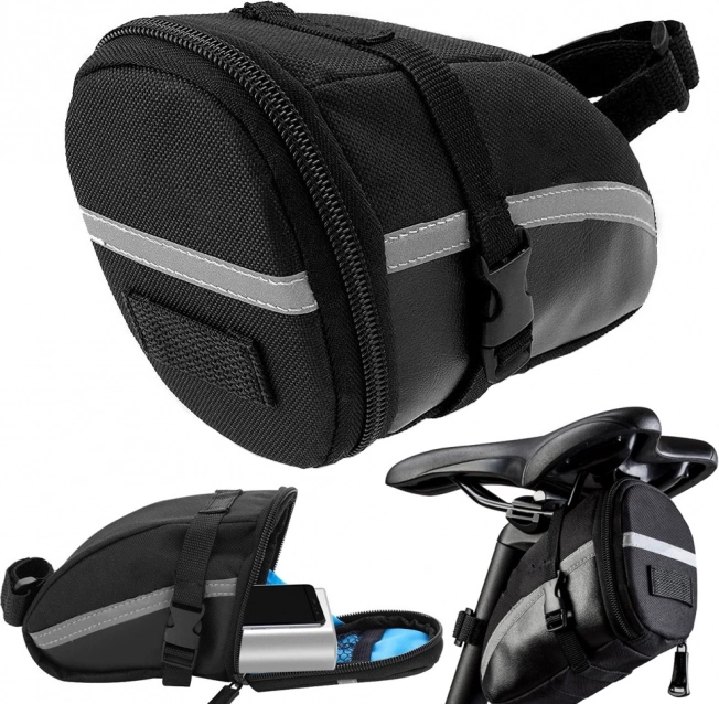 A nyereg alatti táska tartós anyagból készült, részben megerősített, ami biztosítja hosszú élettartamát és holmijai védelmét. Könnyű szerelhetőség tépőzáras és nyomógombos rögzítéssel, ami gyors és egyszerű felszerelést biztosít.