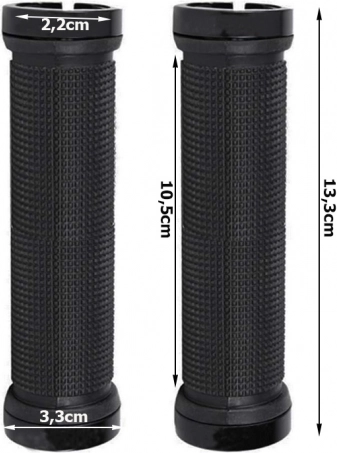 Gumi markolatok kerékpárhoz minőségi csúszásmentes gumiból készülnek, amely puhaságot és ütéscsillapítást biztosít. Fém végek és csavarok gondoskodnak a szilárd rögzítésről és megakadályozzák a markolat véletlen kicsúszását a használat során.