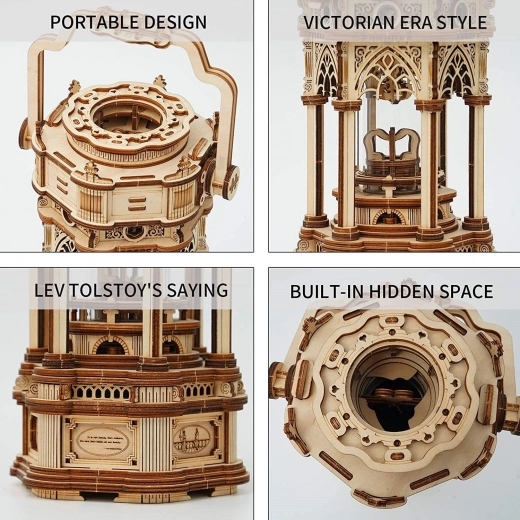 Rokr Viktoriánus Lucerna 3D fa puzzle. Kiváló minőségű mechanikus zenélődoboz részletes kidolgozással, LED világítással és titkos rekesszel. Remek ajándék és elegáns dekoráció.