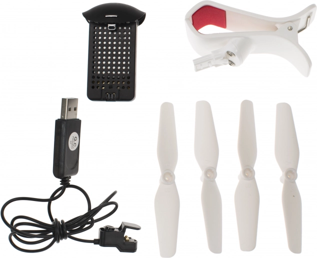 - A készlet tartalma: Syma X23W drón, távirányító, akkumulátor, USB töltőkábel, pótpropellerek