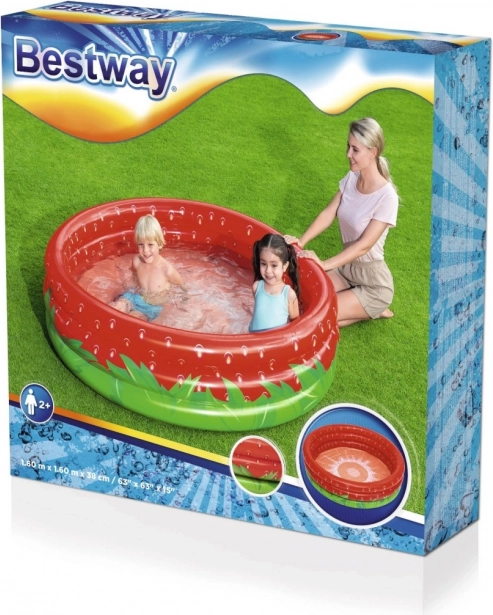 A bájos, eper alakú felfújható medence rengeteg nyári szórakozást nyújt a 2 évesnél idősebb gyerekeknek a kertben. A kompakt 160 × 38 cm-es méretnek köszönhetően könnyen elhelyezhető, gyorsan használatra kész, és ugyanilyen egyszerűen leereszthető és eltehető. A tartós PVC anyag, a 3 felfújható gyűrű és a puhák falak a kényelemért és biztonságért gondoskodnak a gondtalan és biztonságos pancsolásról.