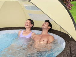 Ez a jakuzzi előtető kiváló védelmet és magánszférát nyújt a kerti relaxáció során. A szabad légáramlást biztosító szellőző ablakokkal és a könnyű összeszereléssel ideális kiegészítő minden Bestway pezsgőfürdőhöz, a St. Lucia és Vancouver modellek kivételével.