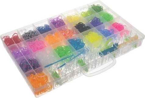 Óriási XXL készlet - A készletünk minden szükséges elemet tartalmaz a gyönyörű karkötők vagy más tárgyak gumikból való készítéséhez. A csomag tartalmaz gumikat, horgokat, csúzlit és szövőszéket.