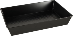 A megerősített sarkoknak és a minőségi kivitelnek köszönhetően a tepsi stabil és ellenálló a deformációval szemben. Használható pitekhez, kuglófokhoz, desszertekhez, valamint sült húsokhoz és zöldségekhez. Alkalmas gáz- és elektromos sütőkhöz. A hosszú élettartam érdekében kézi mosást javaslunk (mosogatógépben nem használható).