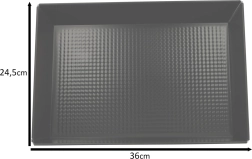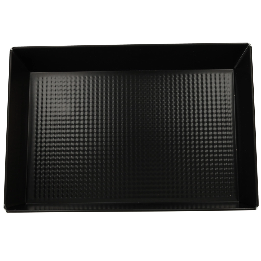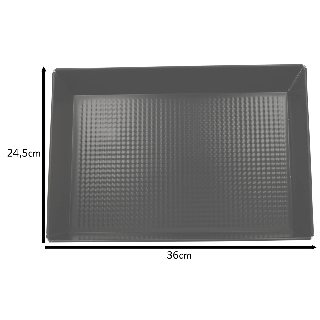 Praktikus fekete sütőlap alacsony széntartalmú acélötvözetből, tapadásmentes „non‑stick” bevonattal – megbízható választás a mindennapi sütéshez. A texturált alj elősegíti a hő keringését és mérsékli az odaragadást, így a pékáruk és a húsok egyenletesen átsülnek, és könnyen kivehetők a formából.