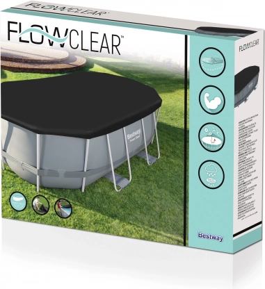 A csomag tartalma egy 424 x 250 x 100 cm méretű medencevédő takaró, amely alkalmas a Power Steel™ Oval Frame Pools medencékhez, és kartondobozban kerül csomagolásra.
