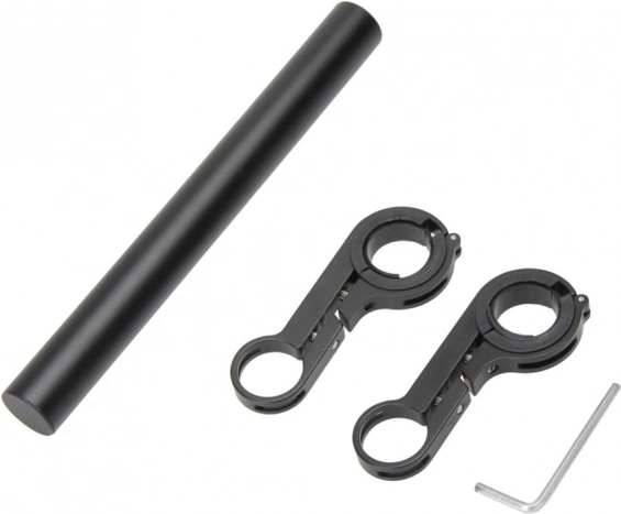 A kiegészítő kormánytartó ideális megoldás azoknak a kerékpárosoknak, akiknek több helyre van szükségük a kerékpáros kiegészítőik számára. A könnyű alumínium ötvözet garantálja nemcsak az időjárási viszonyokkal szembeni ellenállást, hanem az alacsony súlyt is, ami hozzájárul a jobb kerékpár manőverezhetőséghez.