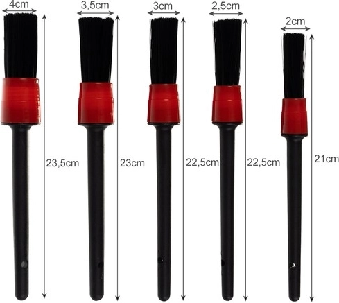 Az Xtrobb készlet öt különböző átmérőjű részletező ecsetet tartalmaz, amelyek lehetővé teszik, hogy tisztítsa a nehezen hozzáférhető helyeket is az autóban. Szintetikus sörtékből készültek, és ergonomikus kialakításuk biztosítja a kényelmes használatot.