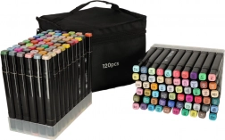 Ez a gazdag, 120 színből álló paletta támogatja a kreativitást, és mindent megad rajzoláshoz, árnyaláshoz és finom átmenetek készítéséhez. A kétvégű kialakítás sokoldalú munkát tesz lehetővé – a széles, vágott hegy a nagy felületekre, a vékony hegy a precíz részletekre ideális.