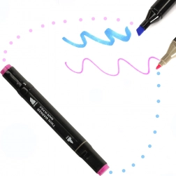 Minden markernek két hegye van – széles a nagyobb felületek gyors kitöltéséhez, és vékony a precíz vonalakhoz és részletekhez. A praktikus állvány kéznél és áttekinthetően tartja a színeket, míg a cipzáras tok megkönnyíti a teljes készlet szállítását.