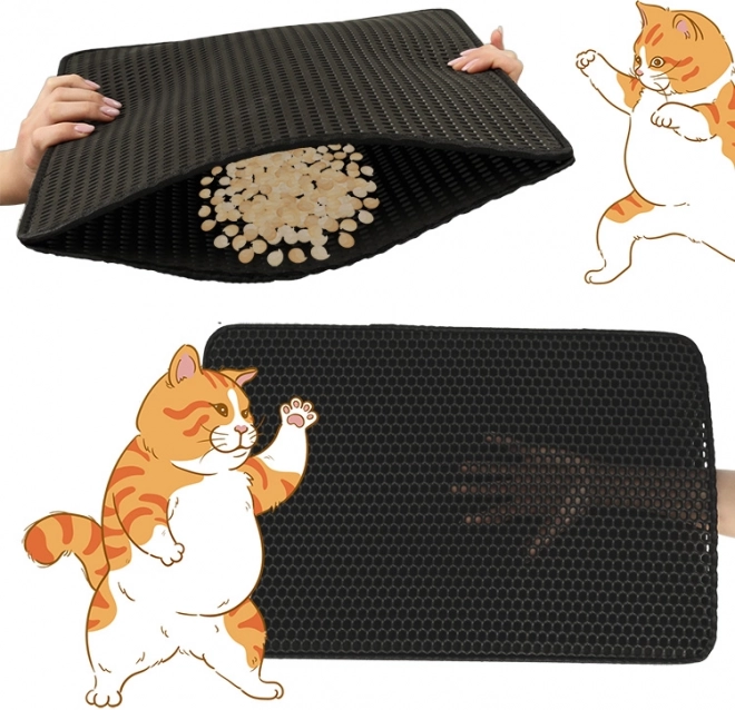 A macskaalom alá helyezhető alátét okos méhsejt-struktúrájával hatékonyan felfogja a széthordott almot, és segít tisztán tartani az otthont. A kétrétegű kialakításnak köszönhetően az alom az alsó rétegbe hullik, ahonnan könnyen visszaönthető. A vízálló EVA anyag nedvességálló és hosszú élettartamot biztosít.