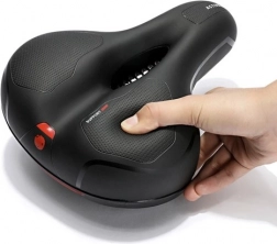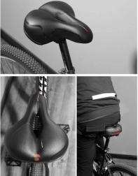 A praktikus fényvisszaverő szalag gyenge fényviszonyok között is fokozza a láthatóságot, a mellékelt vízálló huzat pedig megvédi a nyerget az esőtől. A tartós anyagok (PU bőr, PP elemek és acél váz) hosszú élettartamot és stabil üléspozíciót biztosítanak, támogatva a helyes testtartást.
