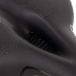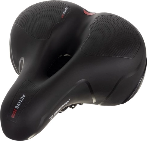 Az ergonomikusan formázott TRIZAND nyereg a kényelmet és a tartósságot ötvözi városi tekerésekhez és hosszabb kirándulásokhoz egyaránt. A puha habnak és a két acélrugónak köszönhetően hatékonyan elnyeli a vibrációt, csökkenti a fáradtságot és növeli a komfortot hosszabb utakon is. A központi szellőzőcsatorna javítja a levegő keringését és mérsékli a nedvesség felhalmozódását.