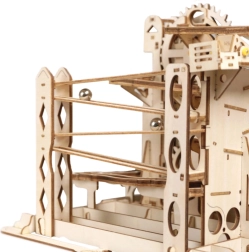 Fedezze fel a mechanika varázsát a ROKR Explorer fa golyópályával – egy okos 3D puzzle, amely ötvözi a STEM oktatást, a precíz lézervágást és a kézi hajtást kurblival. Építse össze a modellt, tekerjen egyet, és figyelje, ahogy az acélgolyók száguldanak a darus felvonón, a döntött kanyarokon és a váltómechanizmuson két különböző útvonalra.