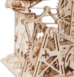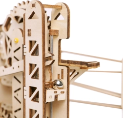 Ez a mechanikus fa modell a tudomány és a gépészet szépségét egyesíti egy magával ragadó golyópályában. A kézi kurblis hajtásnak köszönhetően a fogaskerekek rendszere mozgásba lendül, a felvonó pedig pontosan a pályákra vezeti a golyókat, hintázó és egyenes síneken. Így természetes módon fejleszti a műszaki gondolkodást, a képzelőerőt és a finommotorikát.
