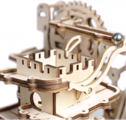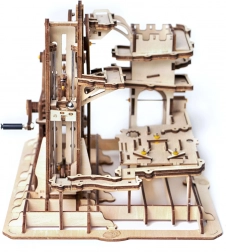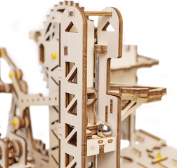 A modell tartalmaz torony elosztót, spirál rámpákat, daru- és kerékemelőt, rövid csúszdát és okosan elhelyezett kapcsolókat, amelyek változtatják a golyók útját. A nehézségi szint 4/5; az összeszerelés kb. 6–7 órát vesz igénybe. Befejezés után egyszerűen tekerje meg a kart, és hagyja, hogy magával ragadja a dinamikus látvány, amely szemléletesen mutatja be a STEM alapelveit.