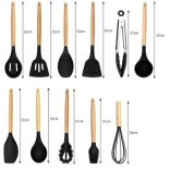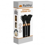 A Ruhhy márkájú konyhai eszközkészlet 12 különböző eszközt tartalmaz, beleértve a spatulákat, merőkanalakat és ecseteket, mindegyik ergonomikus fa fogantyúkkal és tartós szilikon fejekkel rendelkezik. Ezek az eszközök hőállóak, könnyen tisztíthatóak, és megakadályozzák konyhai edényei karcolását.