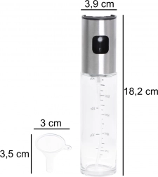 Ez a spray palack ideális segítő az étel elkészítésében. Tökéletesen alkalmas olajok, ecetek, szójaszósz vagy más folyékony fűszerek adagolására. Egyszerű és pontos adagolás biztosított a mechanikus permetezővel, ami finom ködöt képez, ami garantálja az egyenletes bevonatot.
