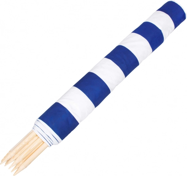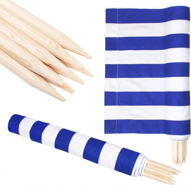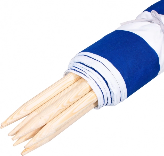 8m kék-fehér strandparaván tökéletes megoldás a szél elleni védelemre és a magánélet biztosítására a strandon. Praktikus függönnyel van ellátva, amely lehetővé teszi az egyszerű tárolást és szállítást.