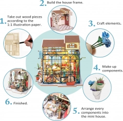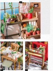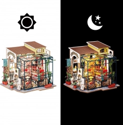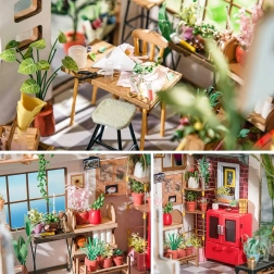 Alkosson meg egy bájos virágboltot csatlakozó üvegházzal, rengeteg növénnyel, polccal és díszített kiegészítővel. A készlet előre kivágott rétegeltlemez elemeket, papír- és textilrészeket, valamint szerszámkészletet tartalmaz, amelyekből élethű modell készül „Flower Shop” felirattal és átlátszó üveg résszel. Összeállítás után stílusos dísze lesz otthonának.