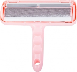 A rózsaszín bolyhok eltávolítására szolgáló henger könnyű használatot kínál a kényelmes fogantyúnak köszönhetően. Speciális nylon sörték és gumi lehúzók biztosítanak alapos tisztítást. Csak néhány mozdulat oda-vissza, és a bolyhok biztonságosan bekerülnek a tartályba.