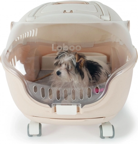 A Loboo Állatszállító BUBBLE SAND Gurulós modellje ideális választás kedvenceink könnyű és biztonságos szállítására. Az elegáns és praktikus kialakítás lehetővé teszi, hogy a szállítót rövid idő alatt kényelmes otthoni fekhellyé alakítsuk, így a kisállat ismerős környezetben utazhat, ami különösen fontos lehet beteg állatoknál.