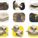 - 6 fő modul + szerkezeti rudak és csatlakozók, T-rögzítésű falak