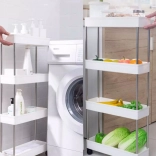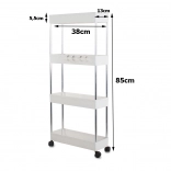 A szekrény úgy van tervezve, hogy hatékonyan kihasználja a teret az otthonában. A négy polc elegendő tárolóhelyet biztosít fürdőszobai kellékek vagy konyhai élelmiszerek számára. A kerekeknek köszönhetően könnyen áthelyezhető és multifunkcionális, így igényei szerint személyre szabhatja használatát.