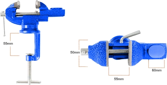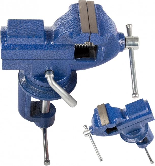 Univerzális, forgó öntöttvas satu műhelybe és garázsba. Kínál 360°-ban forgatható alapot, robosztus felépítést, beépített üllőt és megbízható rögzítést az asztallaphoz kb. 55 mm vastagságig. Ideális fémmegmunkáláshoz, csövekhez, nyomtatott áramköri lapokhoz és egyéb anyagokhoz.