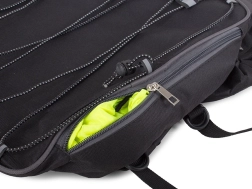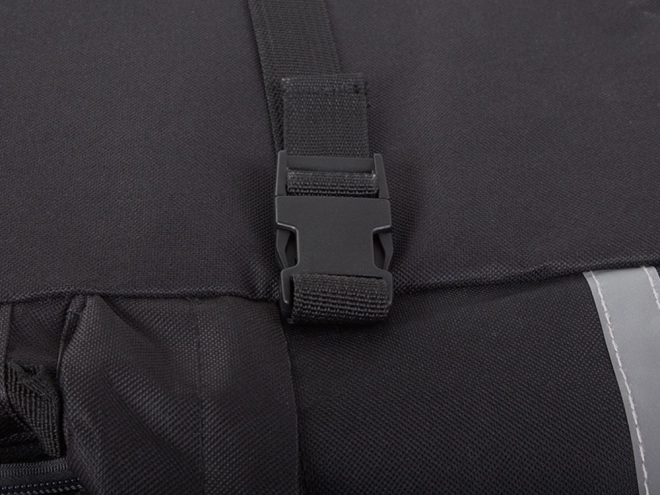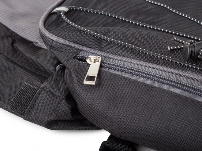 - Biztonság és praktikum: Minden fülke cipzárral van ellátva, két kisebb zseb az oldalaknál és egy felső esővédő burkolat rejtett zsebben.