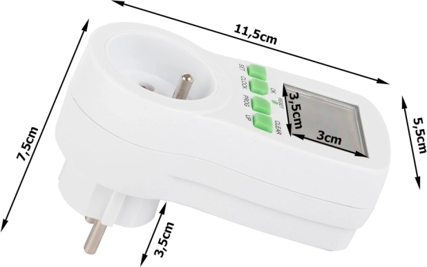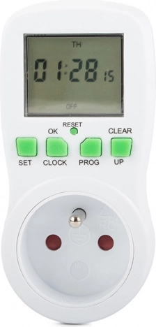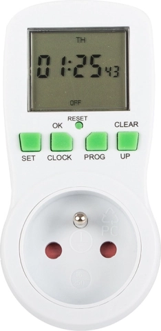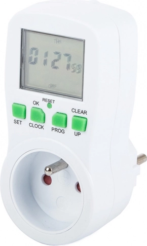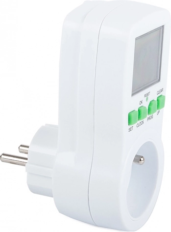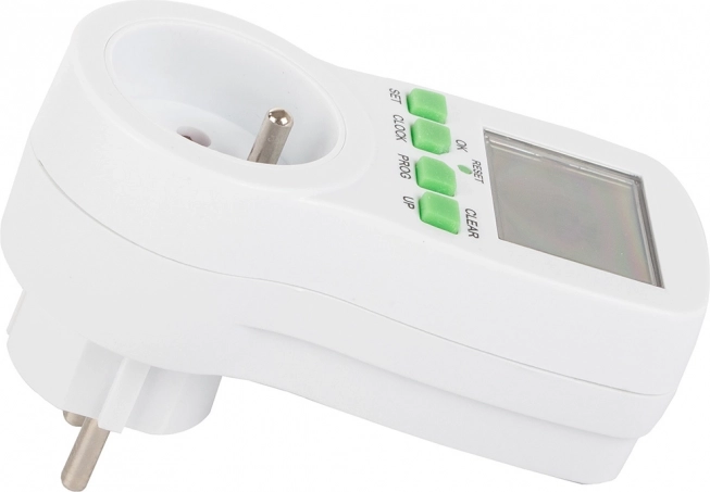 A digitális konnektoros időkapcsoló ideális lámpákhoz, fűtéshez, akváriumokhoz, ventilátorokhoz vagy töltőkhöz. A 16 be-/kikapcsolási programnak köszönhetően könnyen beállíthat heti tervet, és az időzítő elvégzi a munkát ön helyett. A beépített akkumulátor áramszünet esetén is megőrzi a beállításokat, a áttekinthető LCD kijelző és az egyszerű gombok pedig felgyorsítják a konfigurálást.