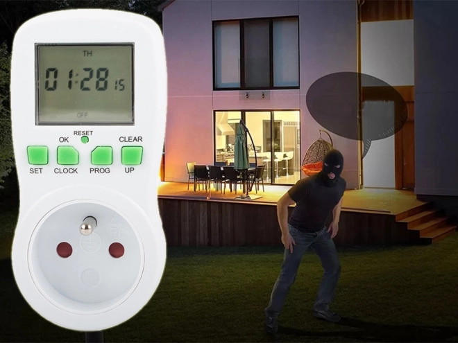 Praktikus digitális konnektoros időzítő nagy LCD kijelzővel, amellyel a beállított program szerint automatikusan be- és kikapcsolhatja a készülékeket. Energiát takarít meg, növeli a biztonságot és a kényelmet, akár 16 programot, véletlenszerű kapcsolási módot a jelenlét szimulálásához és visszaszámlálást kínál. Maximális terhelés 3680 W / 16 A, pontos idővezérlés 24/12 órás módban.