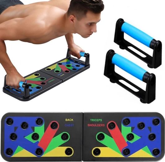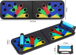Ez a Push típusú deszka lehetővé teszi az összes felső izomcsoport edzését a fogantyúk megfelelő szögben és helyzetében való beállításával. A test saját tömegével formálja a felső végtagok és törzs izmait.