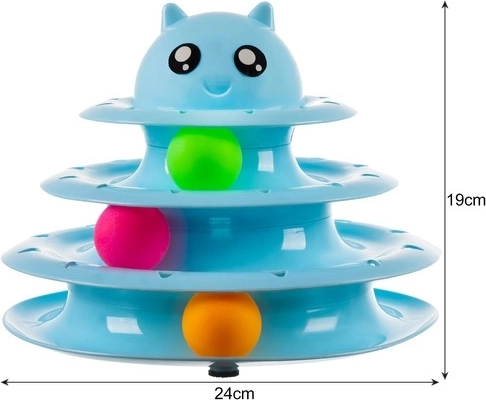 A torony három szintből áll, amelyeken színes golyók helyezkednek el. A golyók könnyen forognak, és interakcióra késztetik a macskákat. A torony tartós műanyagból készült, amely hosszú ideig kitart.