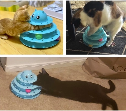 A háromszintű rendszer és a mozgó labdák fizikai aktivitást és szellemi ösztönzést nyújtanak a macskáknak.