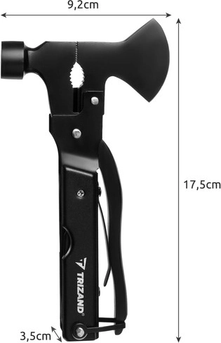 A Trizand 17 az 1-ben multifunkciós szerszám a sokoldalúságot és a kompakt méretet ötvözi szabadtéri kalandjaihoz. Csak 17,5 cm-es méretének és 376 g-os tömegének köszönhetően könnyedén rögzíthető az övhöz vagy elhelyezhető a hátizsákban. Élvezze a kényelmet kempingezés, túrázás vagy horgászat közben, amikor a szükséges eszközök mindig kéznél vannak.