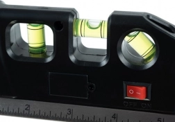 A vízmérték 250 cm-es, mindkét oldalon centiméterben/mm és láb/hüvelykben kalibrált beépített mérőszalaggal rendelkezik.