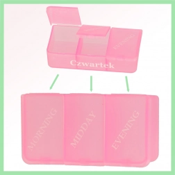 Minden rekesz színszerint megkülönböztetett és címkékkel ellátott, amelyek megkönnyítik az azonosítást, melyik napra vonatkozik. Praktikus csomagolás, ideális utazáshoz vagy mindennapi használatra.
