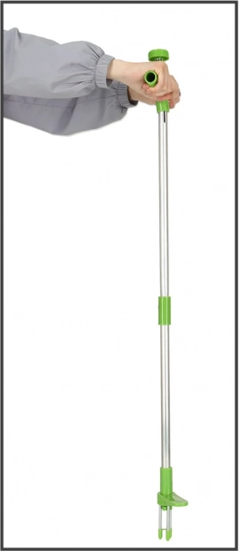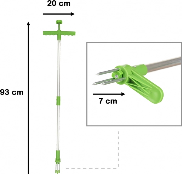 A háromtüskés mechanizmus több oldalról fogja meg a gyomot, erősen megszorítja, és lehetővé teszi a gyökerekkel együtt történő kihúzást. Elég a tüskéket a növény közepe felé irányítani, benyomni, enyhén elfordítani, majd kihúzni. A felső részen található praktikus gomb megkönnyíti a kiszakított gyom eltávolítását az eszközről.