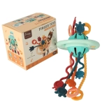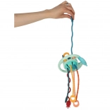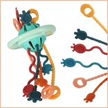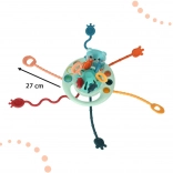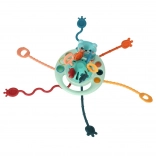Ez a színes, MONTESSORI pedagógiából inspirálódott szenzoros játék változatos ingereket kínál: rugalmas, különböző színű és struktúrájú szilikon zsinórok húzogatáshoz, nyomkodható gombok/gyöngyök és egy csúsztatható karika. A biztonságos anyagoknak köszönhetően rágókának is alkalmas a fogzás időszakában.