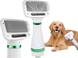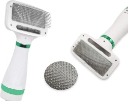 Praktikus 2 az 1-ben szárító kefe házi kedvenceknek, amely egyesíti a hajszárítót és a kefét egyetlen eszközben. A finom, fém tüskék kíméletesen kifésülik a szőrt a bőr megkarcolása nélkül, míg a két üzemmód, a alacsony és magas hőmérséklet gyorsan megszárítja fürdés vagy eső után. Az ergonomikus forma és a kellően hosszú kábel megkönnyíti a használatot kistermetű és nagytestű fajtáknál is.